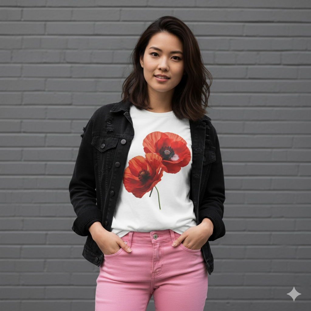 Stunning digital graphic print of red poppies adds an elegant punch of color to a relaxed wardrobe. Looking even closer at the print and you'll see the oil paint affect for an even richer texture.