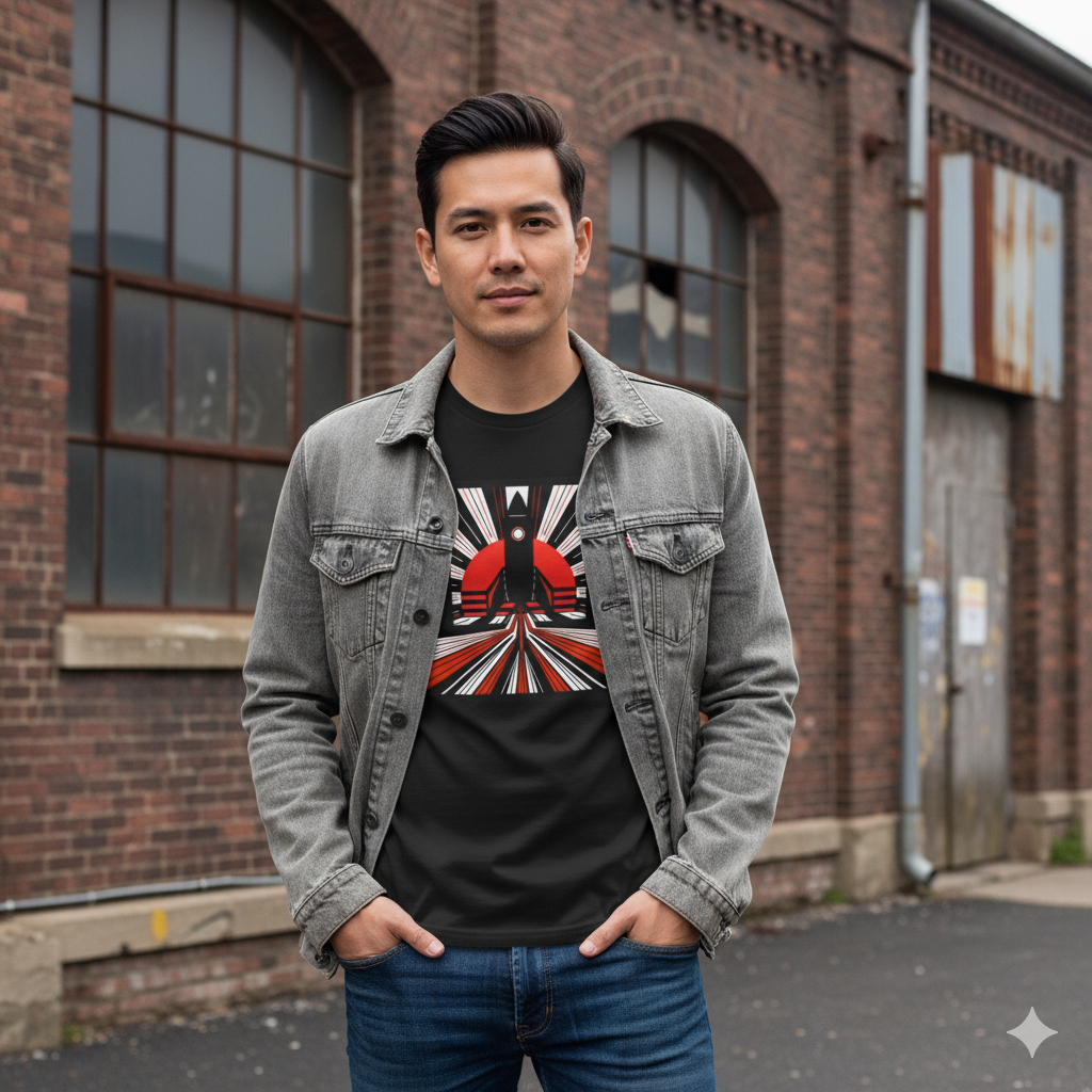 Cool vintage style rocket print shown in black adds some aesthetic flare to your nerd brain.